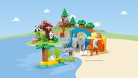 Taapero pääsee hauskalle oppimismatkalle maailman ympäri ja tapaa pandoja, peuroja, norsuja, kilpikonnia, tiikereitä ja niiden poikasia. Yhdessä pääsette opettelemaan niiden ruokailu- ja ääntelytapoja ja kuinka ne hoivaavat poikasiaan. Tutustuttuaan eläinten eläinympäristöihin lapset voivat rakentaa ne niin kuin haluavat.