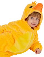 Räpyttele kohti hauskoja pulputusleikkejä! Suloinen hupullinen ankkahaalari on valmistettu pehmeästä fleecestä. Vetoketjulla helposti puettava ja mukava päällä. Sopii erinomaisesti leikkeihin, naamiaisiin ja lämpimäksi kotiasuksi. Saatavilla kahdessa koossa: 90 cm ja 102 cm. Polyesteria.