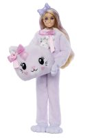 Barbie Cutie Reveal -nukke yhdistää pastellisävyt ja suloisen eläinteeman. Paljasta pehmeän kissa-asun sisältä Barbie-nukke, jolla on pitkät, raidalliset hiukset ja suloiset kuviot poskissa. Mukana 10 yllätystä, kuten väriä vaihtava yksityiskohta ja kiiltävä rusettikampa. Käännettävä pehmotakki ja pehmeä kangashame ovat koristeltu pastellisilla kuvioilla. Mukana myös pieni kissanpentu. 3+