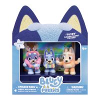Ihastu uusiin nukkapintaisiin Bluey Fuzzies -hahmoihin! Jokainen episode-pakkaus sisältää 3 Bluey Fuzzy -hahmoa. Valitse 6 erilaisesta Bluey Fuzzy Episode -pakkauksesta.Voit asettaa hahmot mukana tulevaan esittelykoteloon, johon mahtuu jopa 5 hahmoa.