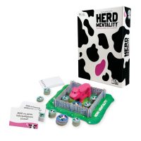 Hauska perhepeli, jonka tavoite on erittäin yksinkertainen: ajattele samalla tavalla kuin kaikki muut! Pelaajat vastaavat kysymyksiin, kuten ottaisitko mieluummin robottikädet vai robottijalat. Jos onnistut vastaamaan, kuten enemmistö, voitat lehmiä. Jos vastasit ainoana eri tavalla, saat pinkin lehmän ja laumasi on arvoton.. Muu. Nyt on aika kulkea lauman mukana! 4-20 pelaajalle. Suomenkielinen. Vuoden perhepeli 2025! 10+
