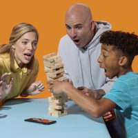 Yhdistä taito, jännitys, nauru ja onni! Pelaajien hermot ovat koetuksella, kun he yrittävät ottaa palikoita tornista ilman, että se romahtaa.