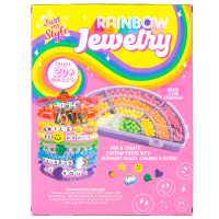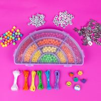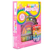 Pirteän värikäs askartelusetti, jolla voi tehdä sateenkaaren väreissä loistavia koruja.