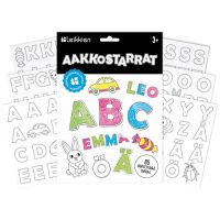 Tutustu suomen kielen aakkosiin hauskalla tavalla! Väritä isot aakkostarrat ja samalla opit tunnistamaan kirjaimia ja luomaan sanoja. Väritä nimesi kirjaimet ja askartele niistä nimikyltti huoneesi oveen. Luo upeita onnittelukortteja, askartele aakkostaulu tai keksi oma tapasi käyttää kirjaintarroja – vain mielikuvitus on rajana! Opi leikkien kirjaimia ja kirjoittamista, hienomotoriikkaa sekä luovuutta. Sisältää kuusi tarra-arkkia (koko A5), joissa on 85 tarraa (74 kirjaintarraa ja 11 kuvatarraa).