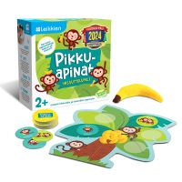 VUODEN LASTENPELI 2024! Leikkien Pikkuapinat on suloinen hassuttelupeli liikkuvalle ja leikkivälle taaperolle! Nosta vuorollasi apinakortti, apinoi tehtävä ja aseta kortti pelilaudalle. Opi vuorovaikutustaitoja liikkuen ja leikkien! Kahdelle tai useammalle pelaajalle. SISÄLTÖ: 40 apinakorttia, hernepussibanaani, pelilauta ja pelisäännöt.
