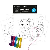 Väritä ja ompele! Perinteiset kartonkiset ompelukuvat, jotka voi myös värittää. Tee ensin reiät ja ompele sitten langalla reiästä toiseen. Leikkien Ompelukuvat on turvallinen ja hauska tapa harjoitella ompelemista ja neulan käyttöä. Ompeleminen kehittää myös hienomotoriikkaa, silmän ja käden välistä yhteistyötä sekä luovuutta.