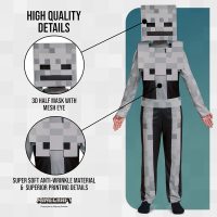 Astu Minecraft-maailman seikkailuihin Disguise Minecraft Skeleton Classic -puvulla! Tämä upea asu sisältää mukavan haalarin, irrotettavan rintapanssarin ja hahmonaamion, jotka täydentävät kammottavan muodonmuutoksesi. Olipa kyseessä Halloween, naamiaisjuhlat tai Minecraft-teemainen hauskanpito, tämä puku on täydellinen valinta Skeletoniksi muuttumiseen! Koko M, 7-8 vuotiaat