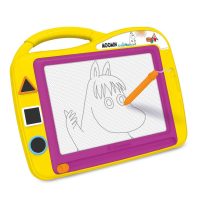 Piirrä tai leimaa kuvia magneettiseen piirustustauluun, pyyhi taulu puhtaaksi ja aloita alusta. Muumi-aiheisessa piirustustaulussa on narulla kiinnitetty kynä, kolme leimasinta ja kätevä kantokahva. 4+