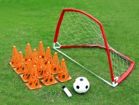 Jalkapallosetti tekee liikkumisesta hauskaa ja innostaa treenaamaan ulkona! Tämä monipuolinen harjoitussetti kannustaa kehittämään potkuja, tarkkuutta ja pallonkäsittelytaitoja. Mukana on jalkapallo, pallopumppu, kevyt pikkumaali, 12 keilaa ja kepit, joiden avulla voi rakentaa omia harjoitusratoja tekniikan hiomiseen. Täydellinen aloittelevalle jalkapalloilijalle tai aktiiviseen pihaleikkiin. 3+